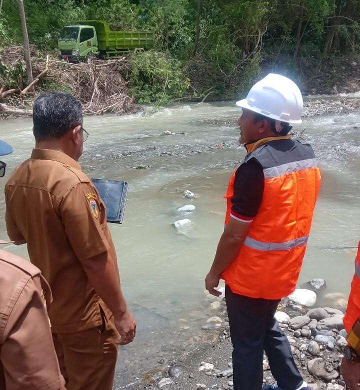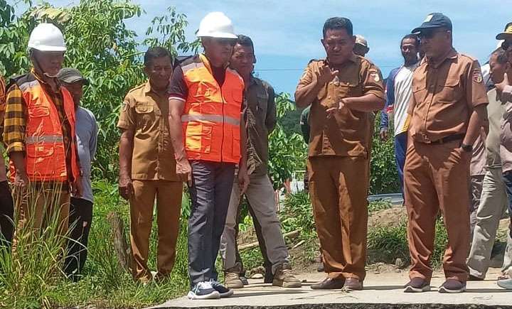 Suasana kebersamaan saat Bupati Tojo Una-Una Ilham Lawidu dan rombongan beristirahat sejenak di sela-sela kunjungan lapangan meninjau pembangunan jembatan penghubung sementara di Desa Bongka Koi